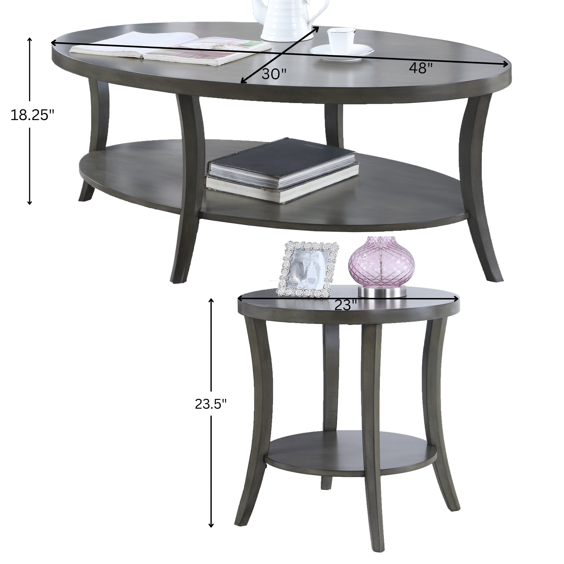Perth Contemporary Oval Shelf Coffee table'set, Gray
